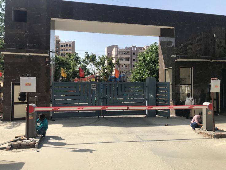 Boom barriers control vehicle access at entry and exit points, ensuring smooth traffic management and security for all areas managed by Auxeron Energies and Construction Private Limited.